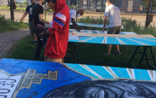 Beautiful murals were created in the uprisings following the murder of George Floyd. We worked with Model Cities and the Ramsey County Historical Society to preserve and exhibit those murals on the side of 825 University.